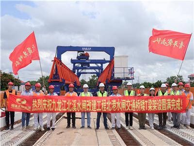北溪水闸改建工程北港交通桥预制梁铺设完成