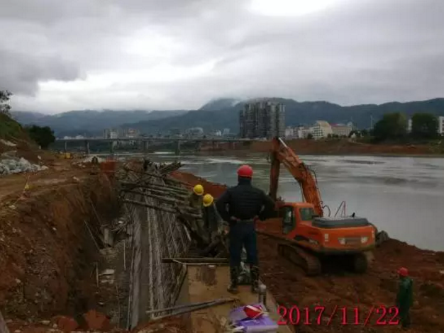 目前,该项目水西下游段防洪堤正在施工中,完成1#、2#箱涵作业;南环路下游段完成围堰施工便道,完成防洪堤建设1000多米,完成1#、2#箱涵作业;下水南段正在进行挡墙作业和部分景观施工中。