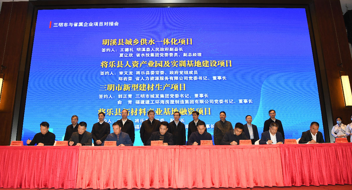 12月7日,在三明市与省属国有企业项目对接会上,省水投集团与明溪县签订城乡供水一体化项目合作协议。