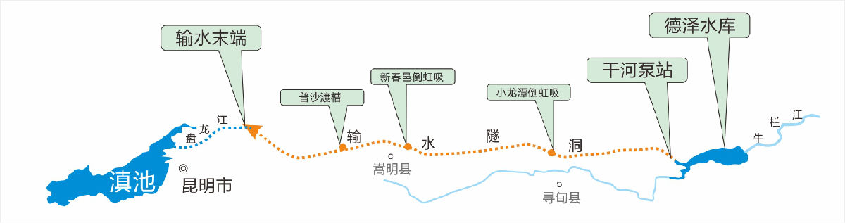 牛栏江滇池补水工程批复概算投资84.26亿元,设计引水量为5.72亿立方米/年,主要由德泽水库枢纽、干河泵站和输水线路工程组成,工程等别为Ⅱ等,是云南省已建成的水利工程中投资最大、工程建设最快的单项水利工程,也是国家172项节水供水重大水利工程项目中首个验收并发挥效益的工程。工程局公司参与输水线02标段干河-糟家湾段的建设。