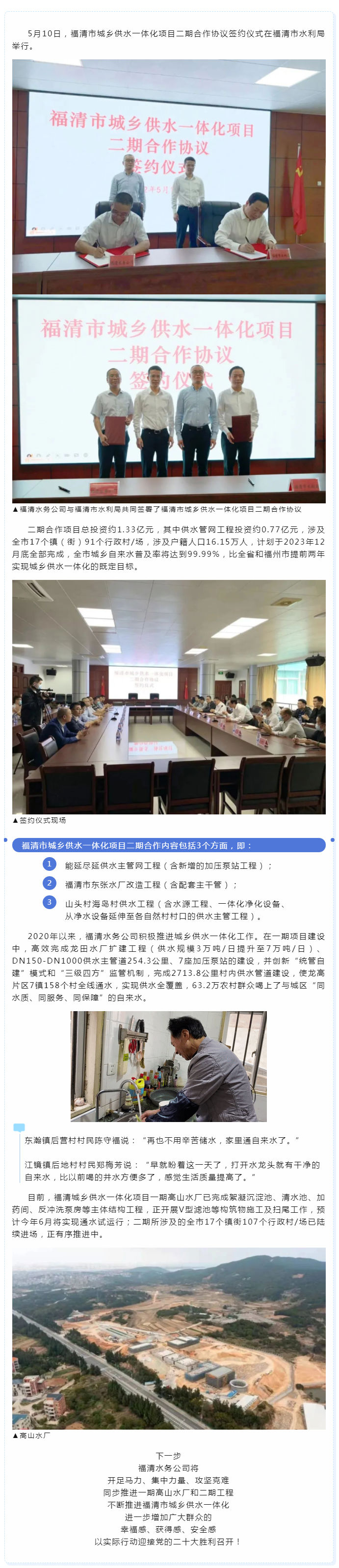“三提三效”见行动 | 中闽水务集团签约福清城乡供水一体化项目二期,将惠及16.15万人!