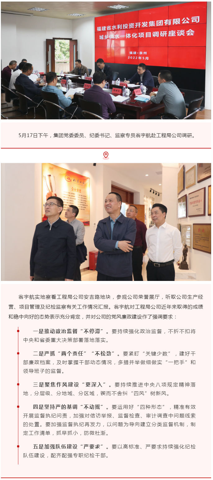 集团党委委员、纪委书记、监察专员翁宇航赴工程局公司调研