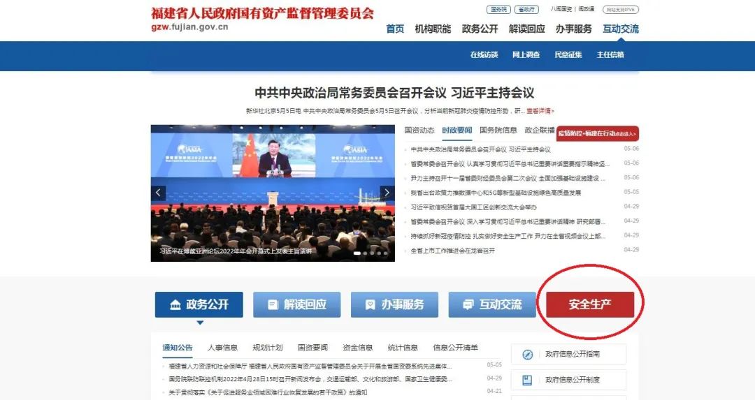 1.点击首页“安全生产”栏目