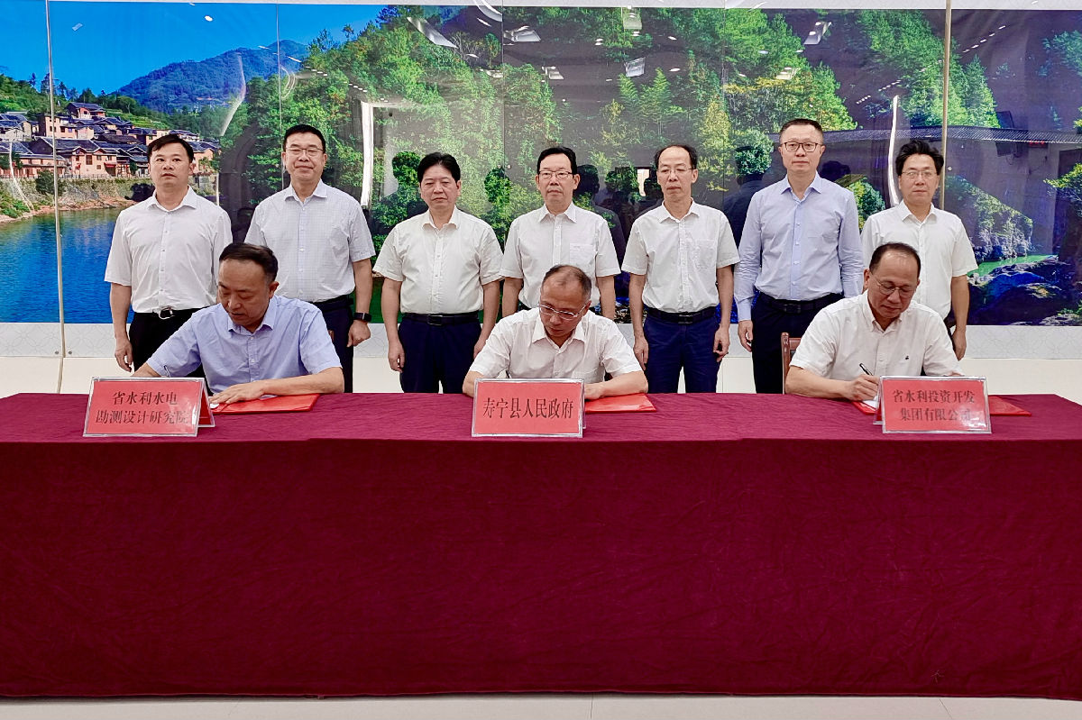 7月28日上午,集团公司、省水电设计院与寿宁县人民政府签订深化水利水务项目三方战略合作协议,省水利厅党组书记、厅长刘琳,省国资委党委委员、副主任周金昭,宁德市副市长叶其发,集团党委书记、董事长梅长河,党委委员、副总经理叶辉,省水电设计院党委书记陈久新,党委副书记、院长何文兴,寿宁县县委书记周乃松,县长张永森等有关领导出席签约仪式。
