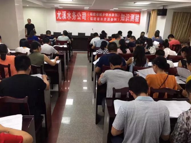 为做好《福建省城乡供水条例》《福建省水资源条例》学习宣贯工作,日前,尤溪水务公司开展“我是专业供水人”主题学习贯彻活动。通过自学、部门讨论、集中测试等方式,迅速掀起学习贯彻《条例》的热潮。