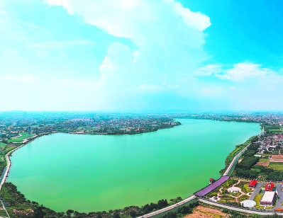 4日,晋江市龙湖水库全景航拍。 本报记者 王毅 摄