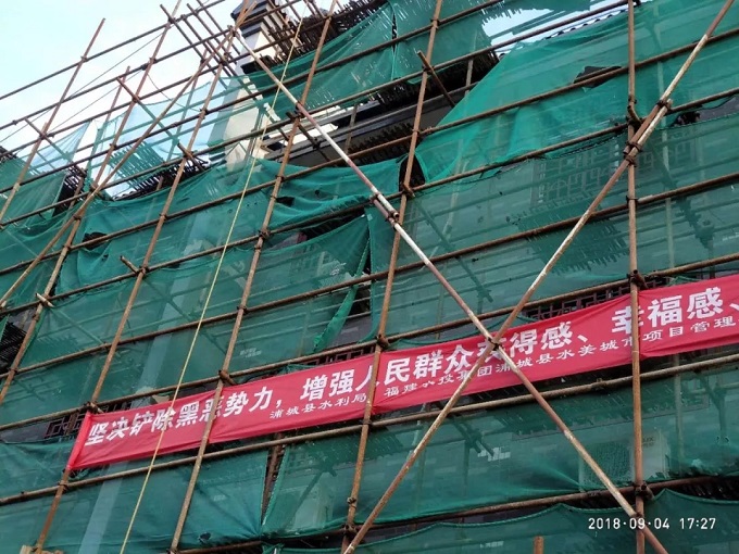 近日,浦城水美城市项目公司联合浦城县水利局在“水美城市”项目施工现场张挂扫黑除恶专项斗争宣传横幅,营造了浓厚的扫黑除恶宣传氛围,也为工程建设创造风清气正,公正公平的良好施工环境。(浦城项目公司 供图)