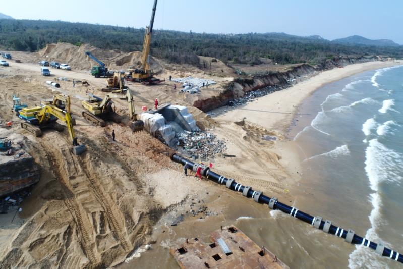 福建向金门地区供水工程设计日供水量3.4万立方米,输水线路总长27.73公里。其中,大陆方负责投资建设晋江龙湖取水泵站及陆地管道部分,总长11.68公里,2015年10月12日开工,于2016年10月底完成陆地管道的铺设;金门方负责投资建设海底管道工程,总长16.052公里,2016年6月24日开工,于2017年11月底完成海底管道的铺设,近期将着手开展工程验收等工作,预计今年5月份可以实现试通水。