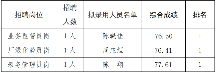 一、拟录用人员名单