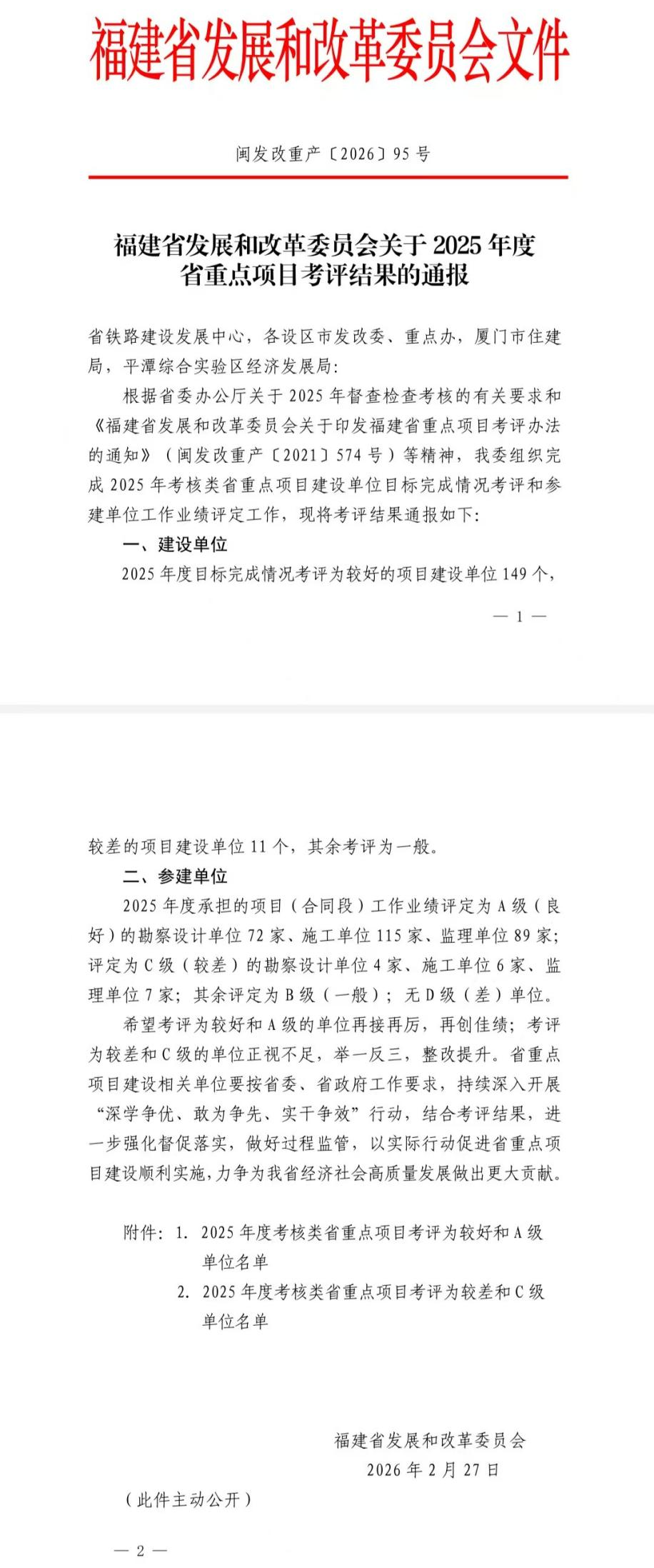 日前,在省发改委组织开展的2025年度考核类省重点项目建设单位目标完成情况考评和参建单位工作业绩评定工作中,九龙江北溪水闸工程项目建设单位北溪供水公司、施工单位工程局公司分别获评较好单位和A级单位。九龙江北溪水闸改建工程是闽西南水资源配置工程重要组成部分,总投资约13亿元,是一座以供水为主,兼顾防洪、航运、...