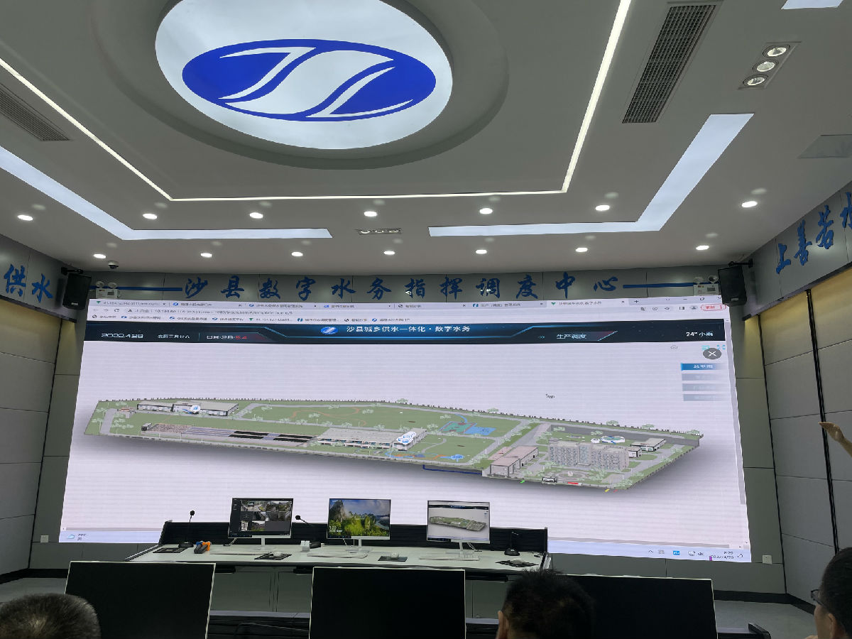 在沙县数字水务调度中心,综合调度平台、GIS系统、水质管理系统等大数据系统,实时监测、反映着全区管网长度、压力、水厂水质、管网水质、流量等数据。沙县城区共有管网295.6KM,22个压力监测点,目前已接入现有3个水厂的出厂水质、用户水表等信息。