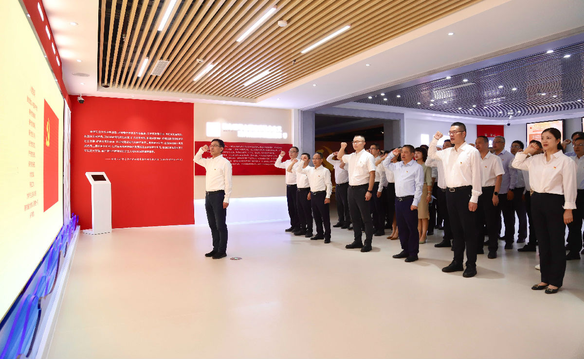 在数字化展馆,参观人员跟随讲解员,认真聆听讲解、观看视频、查阅资料,共同重温中国共产党百年自我革命的光辉历程,深入学习习近平总书记关于全面从严治党重要论述和在福建工作期间的重要理念、重大实践,回顾了解福建省党风廉政建设和反腐败斗争的主要成效经验,从先烈先辈先贤勤廉风采中汲取精神养分,从反面典型案例中深刻吸取教训,接受了一场沉浸式廉政警示教育。最后,所有党员干部面向党旗郑重宣誓,重温了入党誓词。