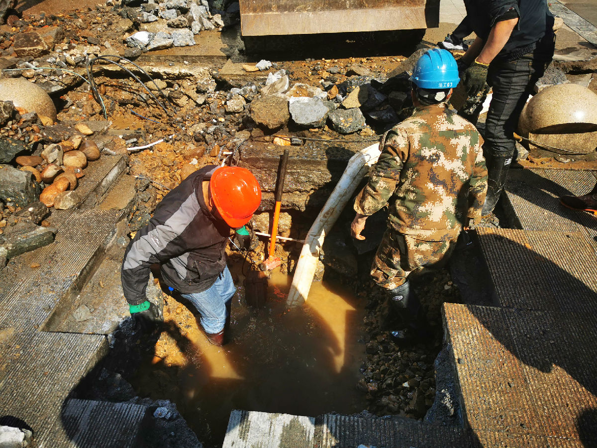 由于爆管位置埋设较深、花岗岩路面无法大面积开挖、地处繁华街道人车流量较大大……诸多不利因素给抢修带来极大困难。将乐水务公司管道抢修队不畏严寒、争分夺秒!在泥泞的积水中搜寻爆管的具体位置、对管道断裂处进行外壁打磨、包箍固定……当天下午3点,抢修人员经过连续6小时不间断作业,终于抢在居民用水晚高峰前,成功修复了爆管并恢复供水。恢复供水后的第一时间,将乐水务公司水质检测中心对供水片区末端水进行了取样检测,确保水质符合生活饮用水的标准,服务中心发布恢复供水消息和用水温馨提示,用“速度”给用户带来“温度”。