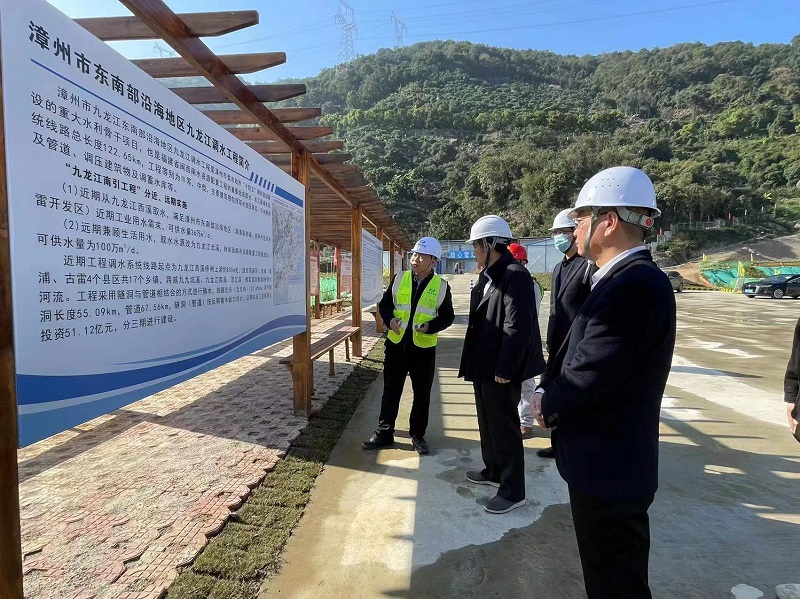 2月17日,省国资委二级巡视员王强到集团所属省重点项目——漳州市东南部沿海地区九龙江调水工程开展“深学争优、敢为争先、实干争效”督导调研工作。