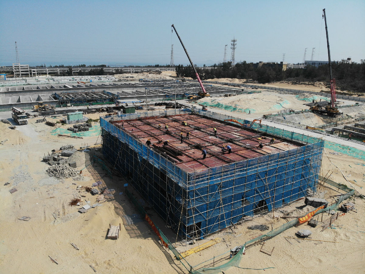 平潭北部自来水厂厂区构筑物进入主体施工阶段,累计完成建安投资40%,预计今年上半年完成厂区土建部分施工。