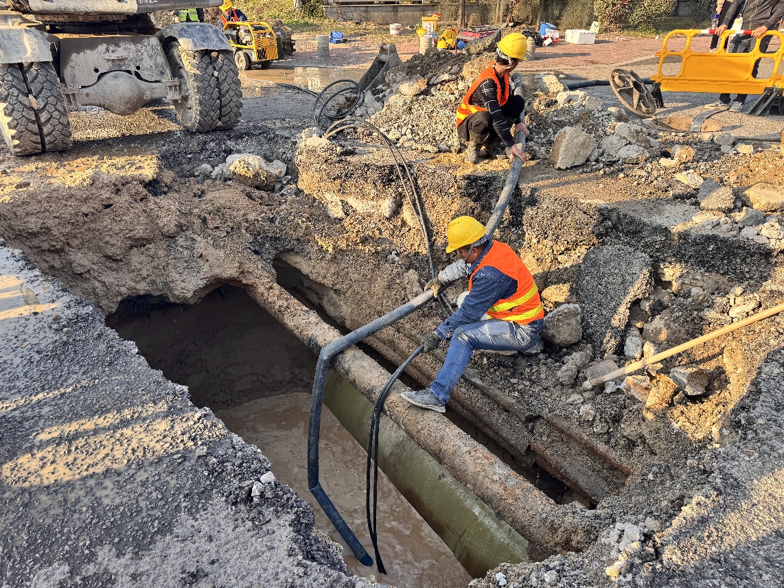 这次抢修难点重重,管道埋深大、寻找漏点耗时、抽排积水费时、周边管线复杂制约机械使用、寒冷天气影响修复材料固化……每一个难点,都被这支抢修队伍用专业、经验和毅力一一攻克。