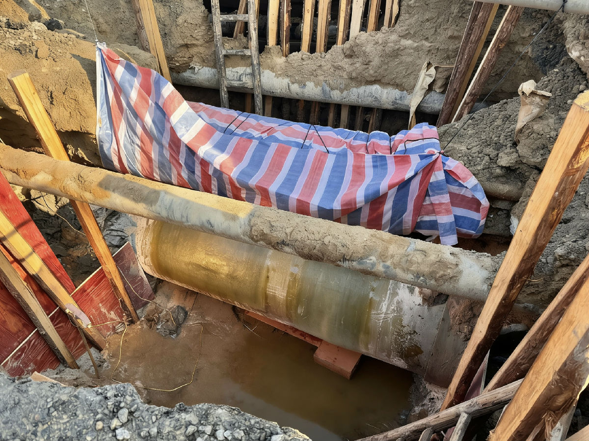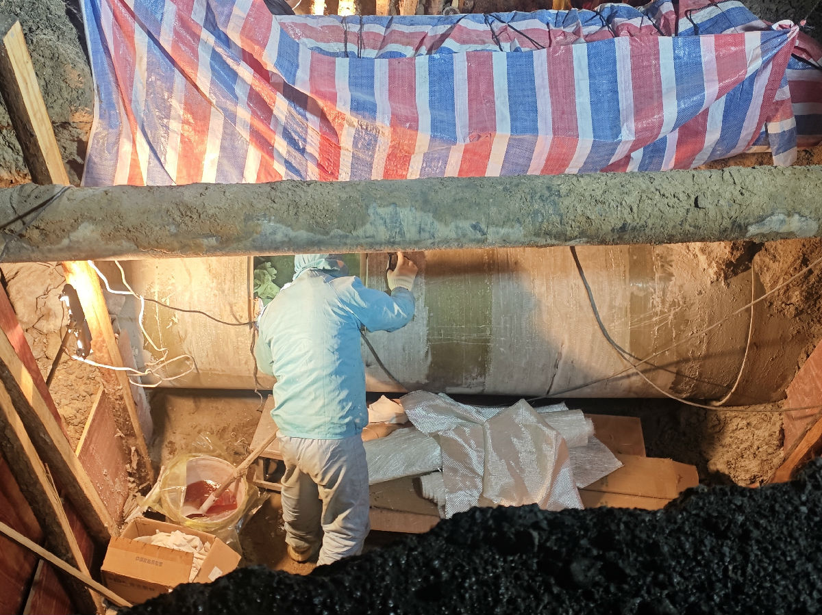 真正的挑战才刚刚开始。修复必须进入管道内部作业,抢修人员在管道上方开出一个40×50厘米的“天窗”,将坑内和管道中的积水抽干。然而,冬日的积水冰冷刺骨,抽干后,管壁仍然湿滑。