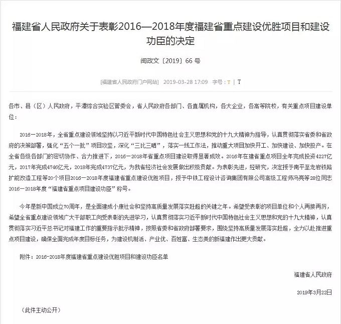 日前,省政府发文表彰了2016—2018年度福建省重点建设优胜项目和建设功臣。省水投集团所属工程局公司承建的德化彭村水库入选重点建设优胜项目。
