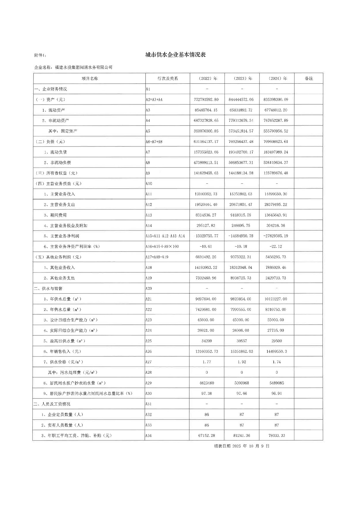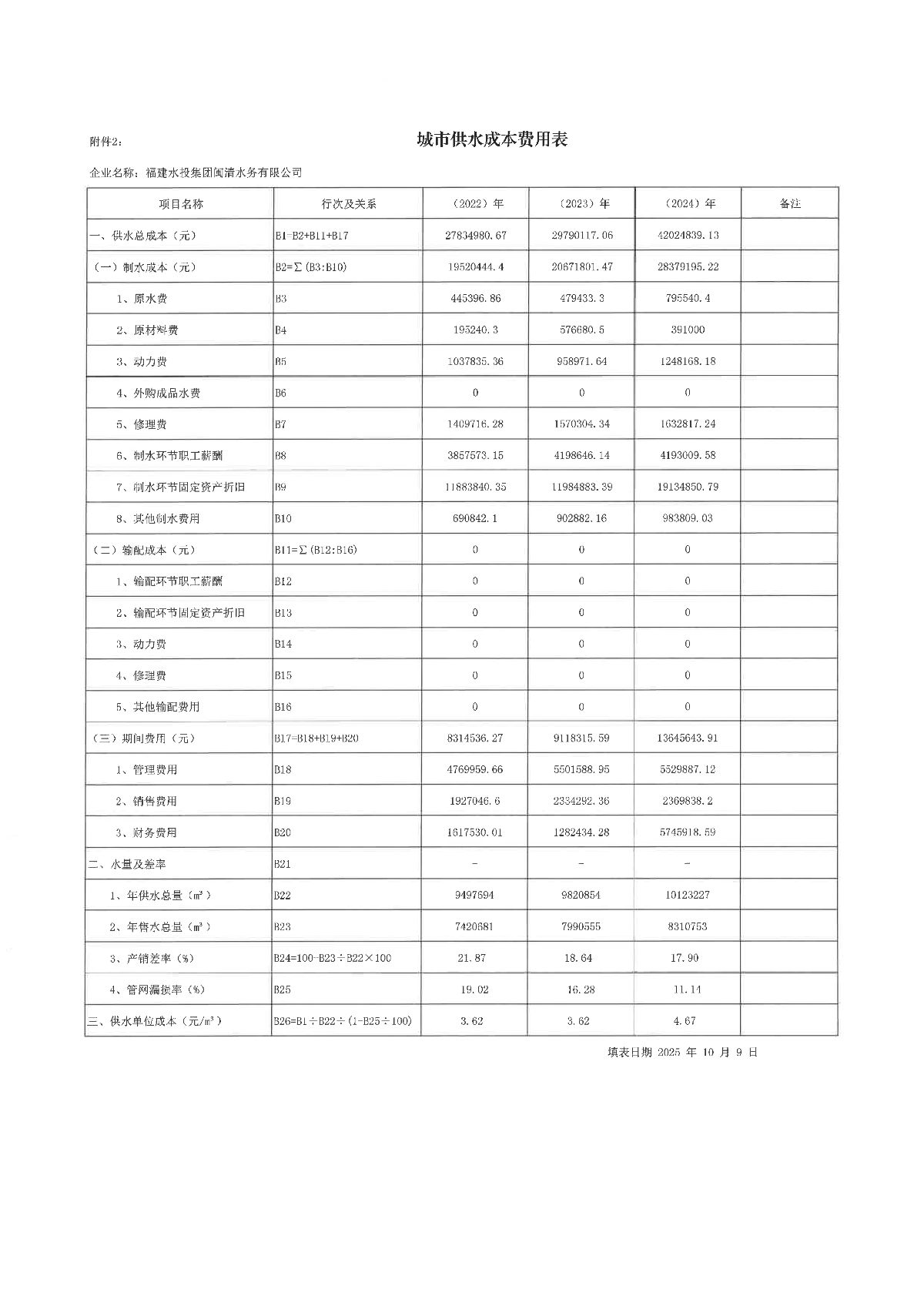 福建水投集团闽清水务有限公司关于闽清城区供水价格成本的公告