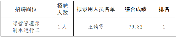 福建水投集团长泰水务有限公司第一批招聘拟录用人员公示