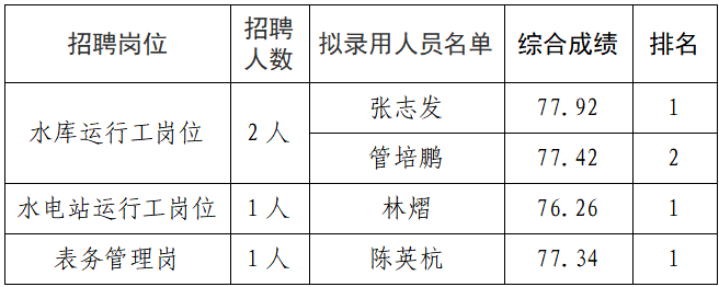 根据福建水投集团沙县水务有限公司招聘公告,经过报名、资格审查、笔试、面试等公开招聘程序,现将拟录用人员进行公示。公示时间从2026年4月22日开始,公示期为七个自然日。在此期间内,如有意见可通过来电、来信、来访的形式反映情况。