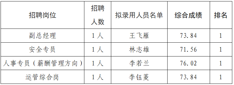 根据福建水投集团华安水务有限公司招聘公告,经过报名、资格审查、笔试、面试等公开招聘程序,现将拟录用人员进行公示。公示时间从2026年4月23日开始,公示期为七个自然日。在此期间内,如有意见可通过来电、来信、来访的形式反映情况。